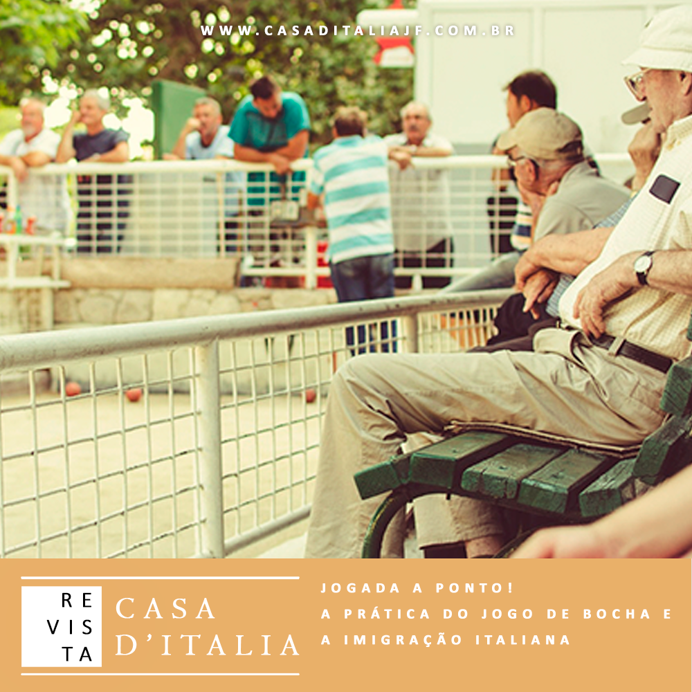 REVISTA CASA D’ITALIA – Ano 01, nº04, 2020 Ano 01, nº04, 2020 – Revista Casa d’italia: Conhecendo italianidades em Minas – ISSN: 2764-0841 Um cantinho da Itália em MinasPaola Frizero ENTREVISTA: Leandro Dias, integrante do Time de Bocha Casa D’Italia JF Jogada a ponto! A prática do jogo de bocha e a imigração italianaRafael de Souza Bertante Palco Italiano: uma inovação cênica e acústica para o espaço performáticoRodrigo Spinelli